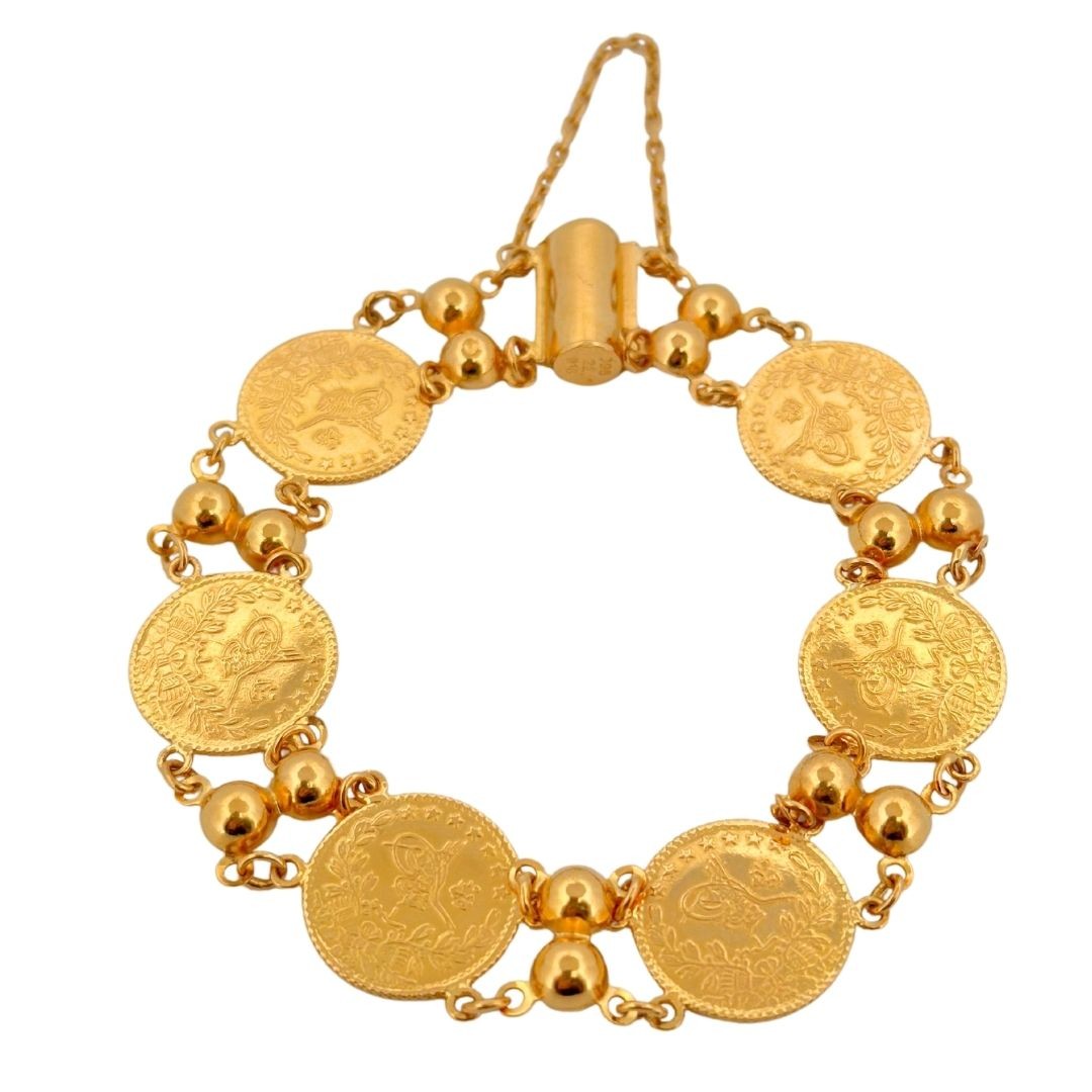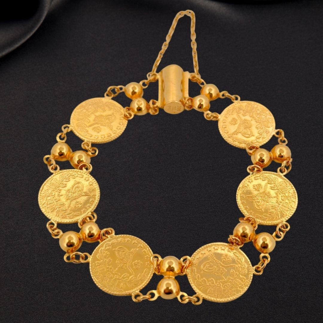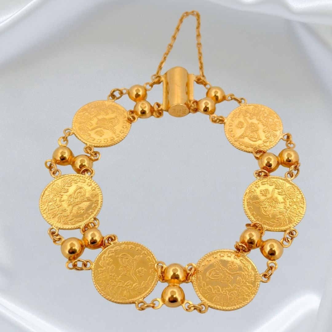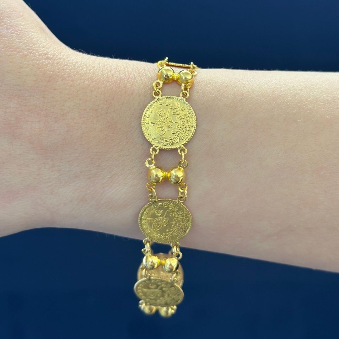 Sıralı Reşatlı 22 ayar altın bileklik, Türk kuyumculuğunun eşsiz bir örneği olarak öne çıkar. Tarihi geçmişi olan Reşat altınlarının, modern bir tasarımla birleşimi, bu bilekliğe hem klasik bir hava hem de güncel bir şıklık katar.