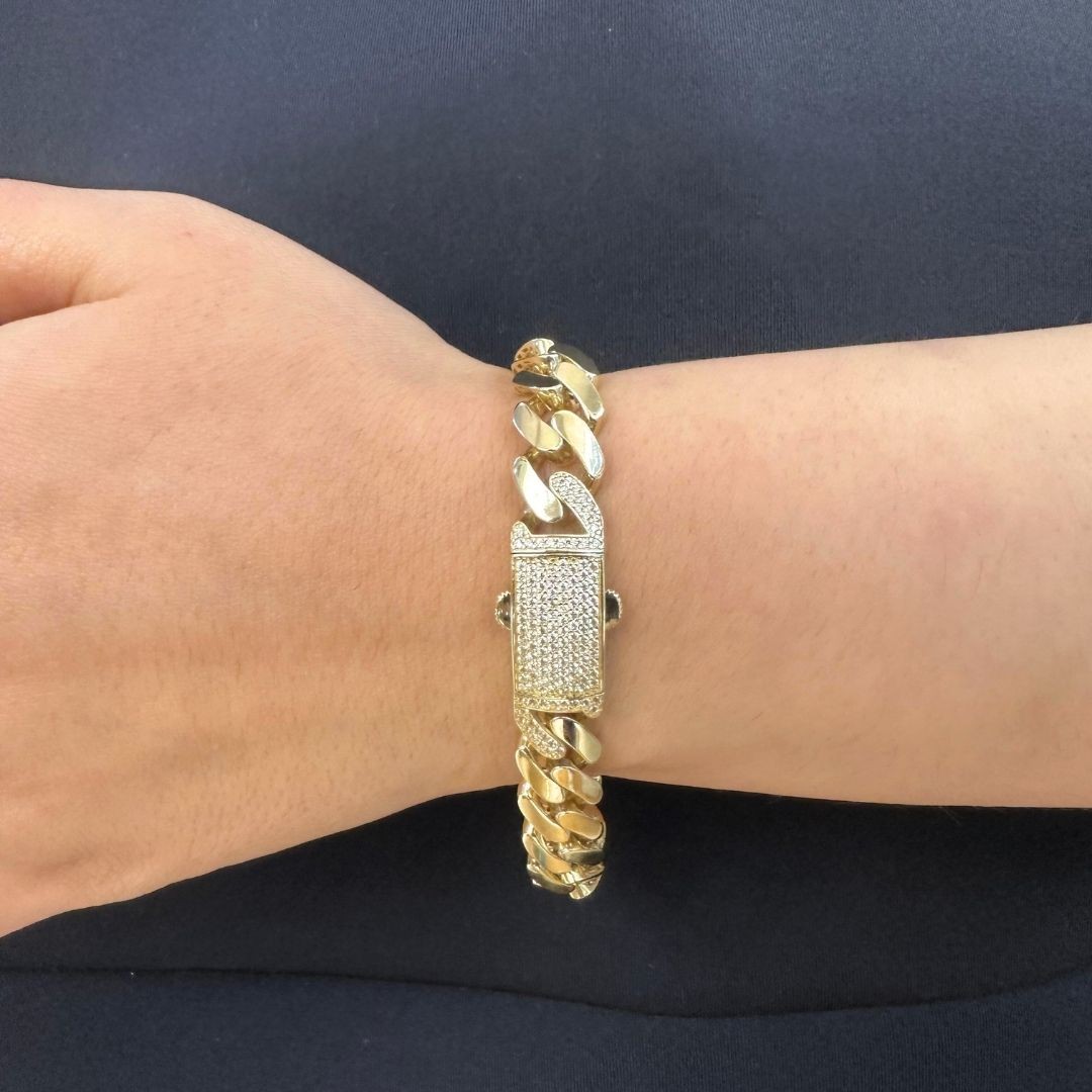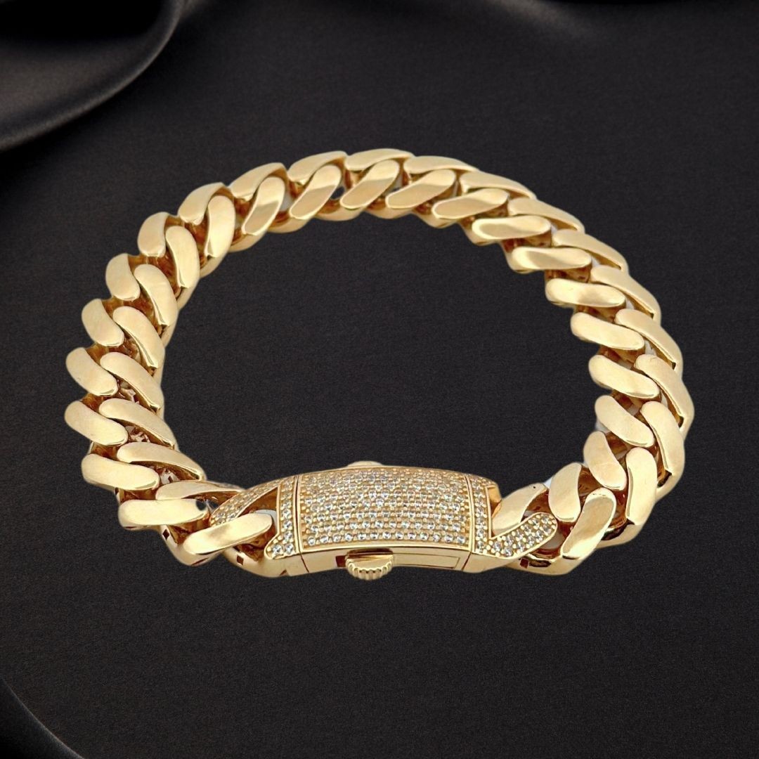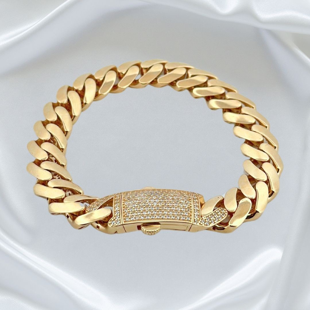 Bilekliğin taşlı kilit detayı, zarif bir dokunuş ekleyerek, takıya lüks bir hava katıyor. Gurmet zincir yapısı, modern bir tarz ve rahat bir kullanım sağlarken, her türlü kıyafetle kolayca kombinlenebilir.