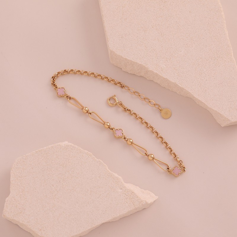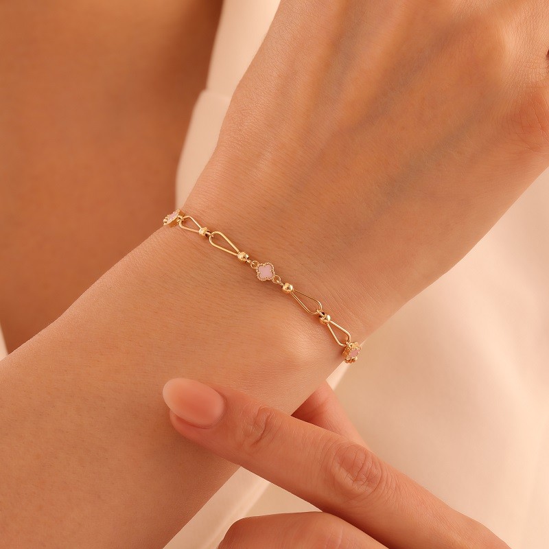 Yonca 14 ayar altın bileklik, hem şık bir aksesuar hem de şansın sembolü olarak özel bir anlam taşıyan, anlamlı bir mücevherdir. Yonca figürünün zarif tasarımı ve 14 ayar altının ışıltısı, bu bilekliği her tarza uyum sağlayan, göz alıcı bir aksesuar haline getirir.