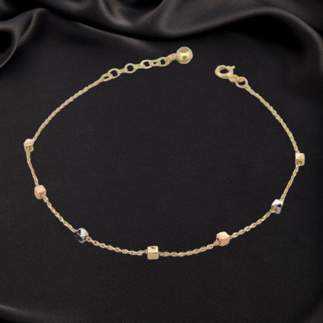 Kare Dorika altın bileklik, klasik dorika tasarımının yuvarlak altın topları yerine kare şekilli altın parçacıklarının kullanılmasıyla ortaya çıkan, modern ve özgün bir tasarıma sahiptir. Bu model, hem klasikleşmiş dorika stilini seven hem de farklılık arayanlar için ideal bir seçenektir.