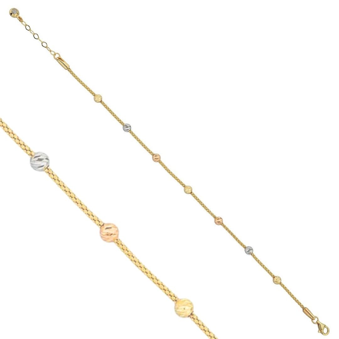 Zarif ve Benzersiz: Üç Renkli Dorikalı 14 Ayar Altın Bileklik
