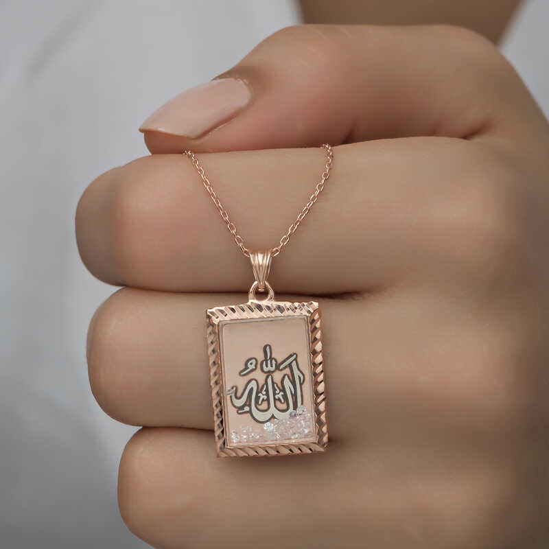 Gümüş Rose Allah Yazılı Kadın Kolye