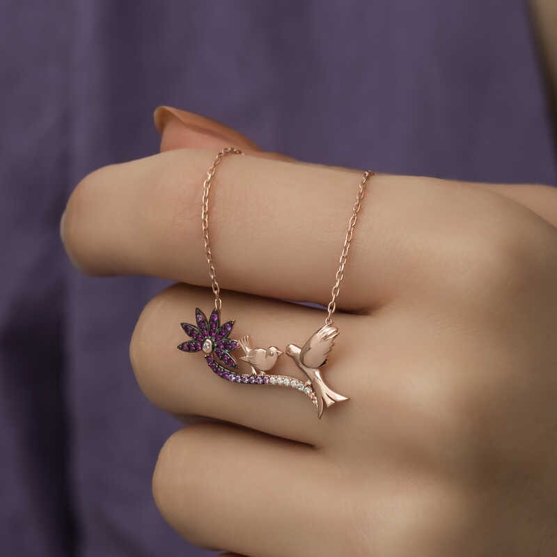 Anne ve çocuk arasındaki sevgiyi temsil eden özel bir tasarımdır. Annenize olan bağlılığınızı belirtmek için alabileceğiniz en uygun hediyelerden biri bu anne ve yavru kuş bayan kolyesi olacaktır. Anneniz için tasarlanan bu özel tasarım anne ve yavru kuş bayan kolyesi 925 ayar gümüşten imal edilmiştir. Gümüş üzerine rose kaplama yapılmıştır. Rose kaplama yapılan gümüş anne ve yavru kuş bayan kolye modelleri parlaklığını uzun süre muhafaza eder ve oksitlenmesi gecikir. Kolye üzerinde bulunan taşlar zirkondur. Gümüş olan zincir boyu ortalama 45 cm'dir. Gümüş anne ve yavru kuş bayan kolye el emeği ile üretilmiştir. Gümüş ve değerli taşlar nedeniyle belirtilen ortalama ürün ağırlığında ± %10 sapma olabilmektedir.