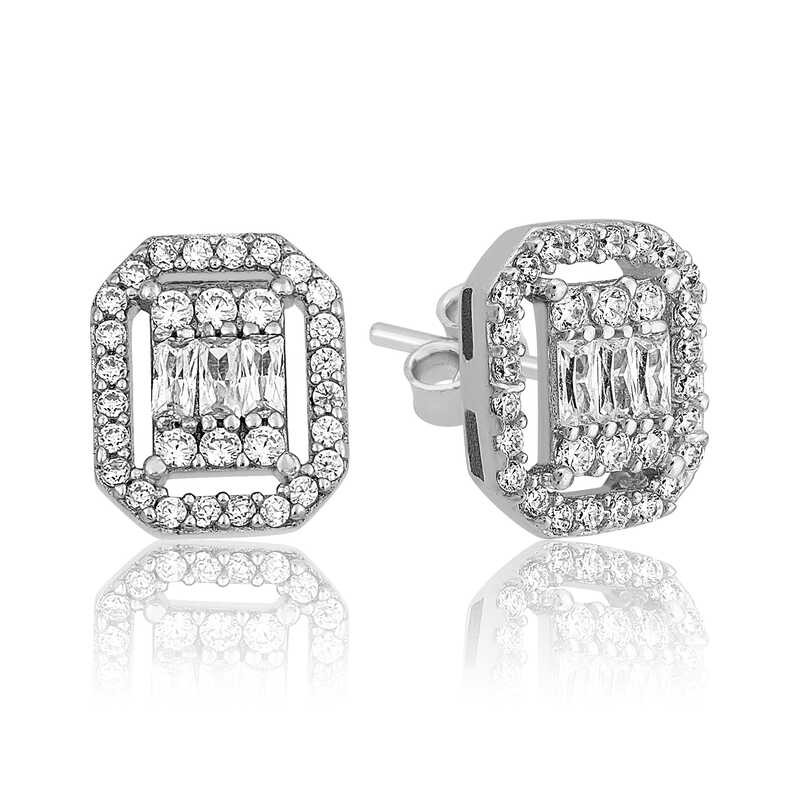 Gümüş Beyaz Baget Taşlı Çivili Kadın Küpe