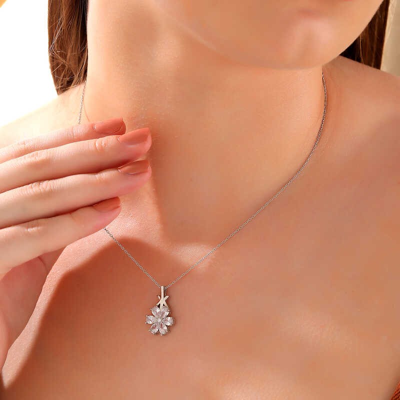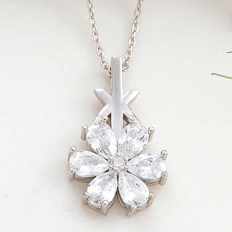 Gümüş Beyaz Sevgi Çiçeği Kadın Kolye