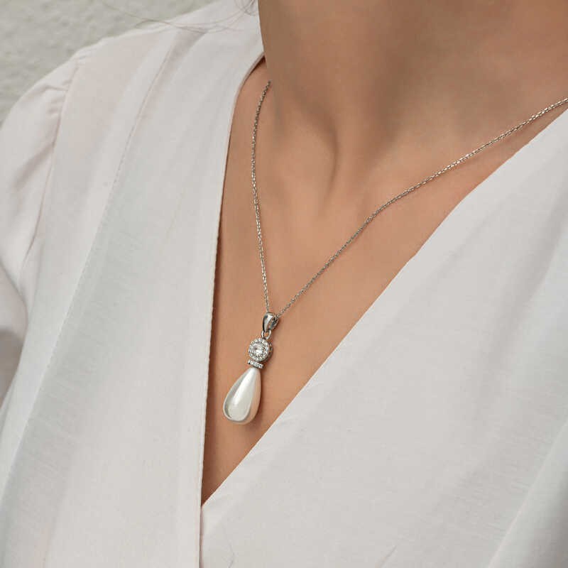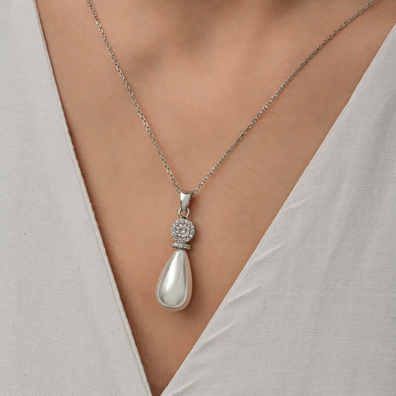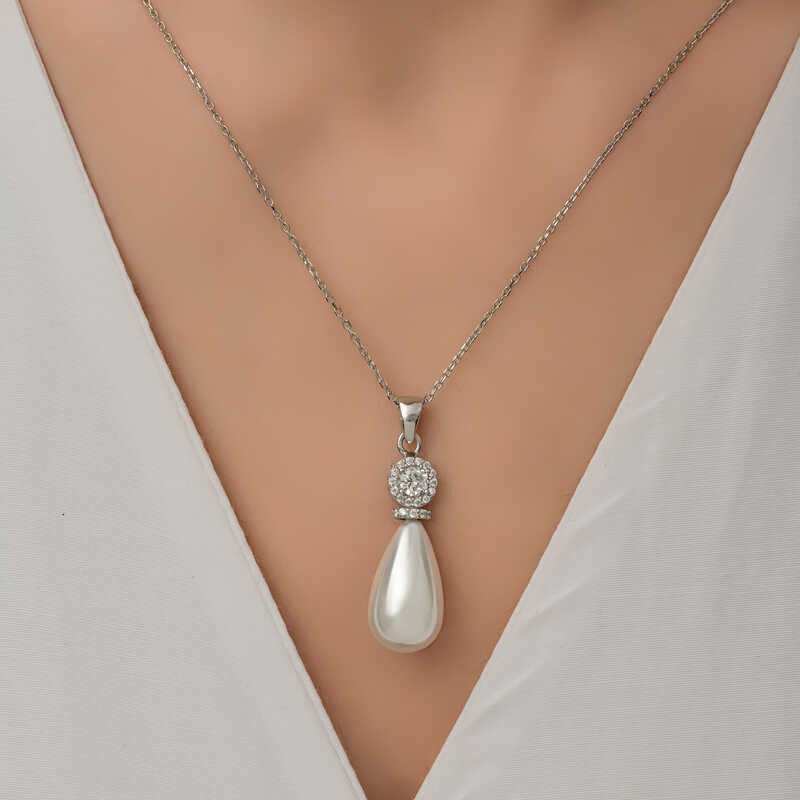 Gümüş Damla İnci Kadın Kolye