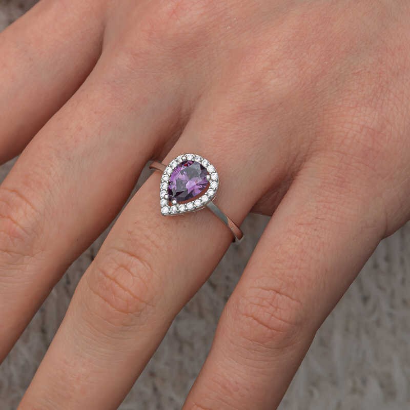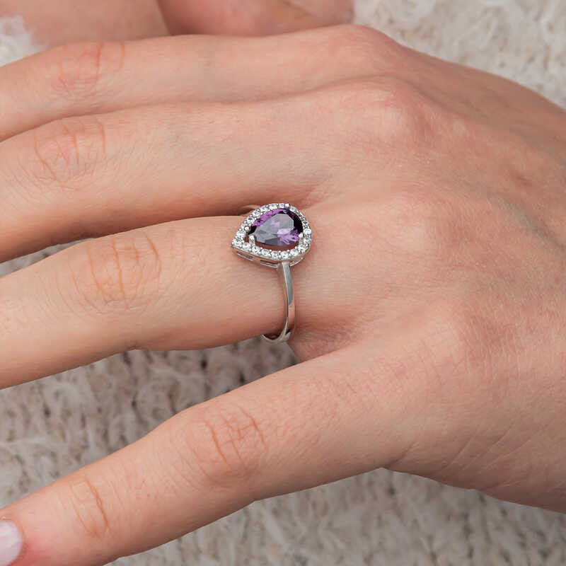 Gümüş Damla Mor Taşlı Kadın Yüzük