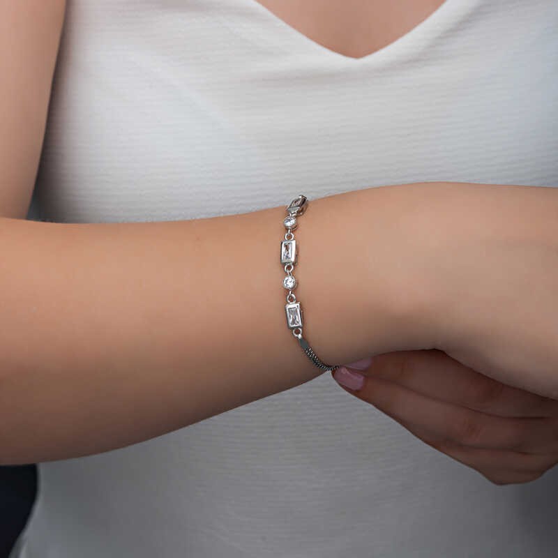 Gümüş Dikdörtgen Zirkon Taşlı Kadın Bileklik