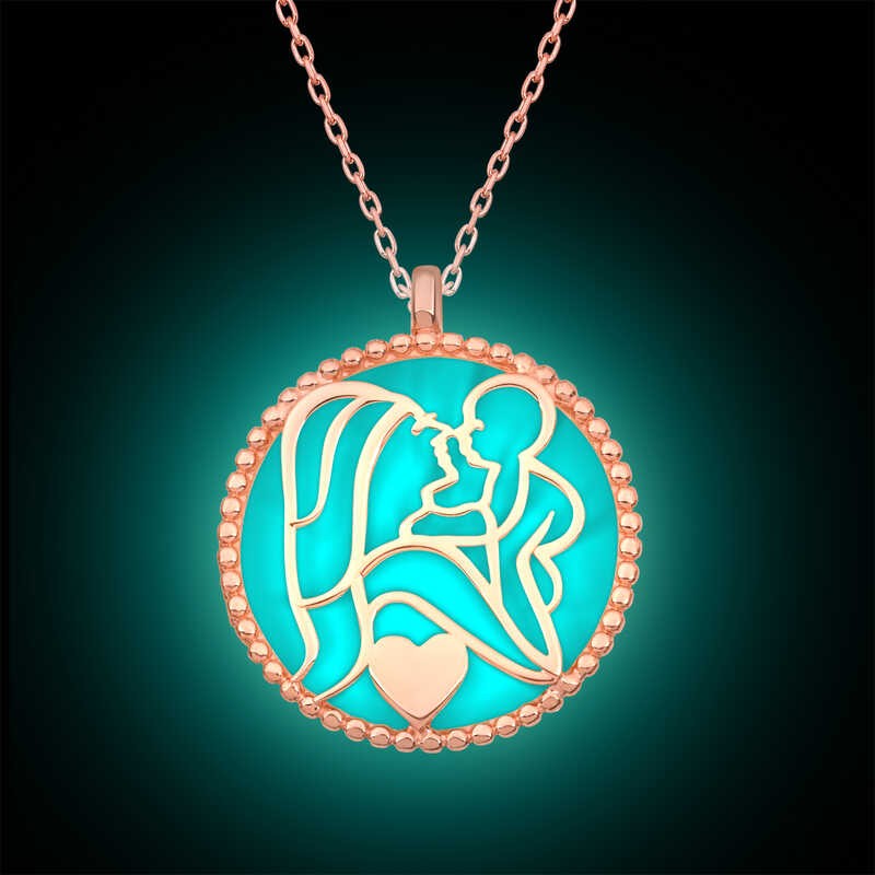 Gümüş Fosforlu Rose Anne Çocuk Sevgisi Kadın Kolye