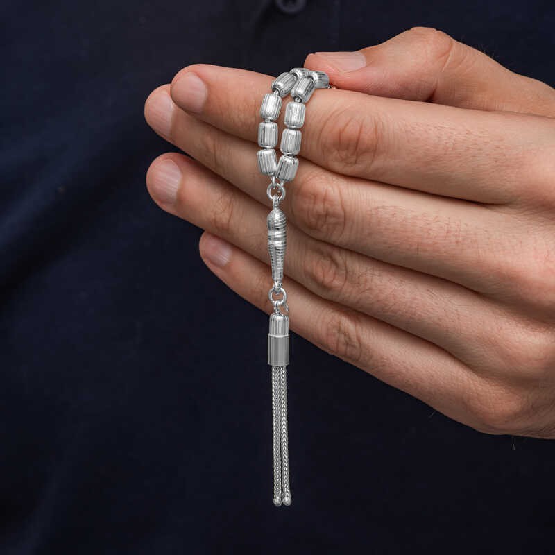 Gümüş Kapsül Kesim Çizgili Erkek Tesbih