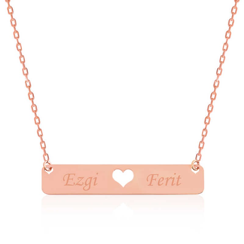 Gümüş Rose Kişiye Özel İsimli Çubuk Kalp Kolye