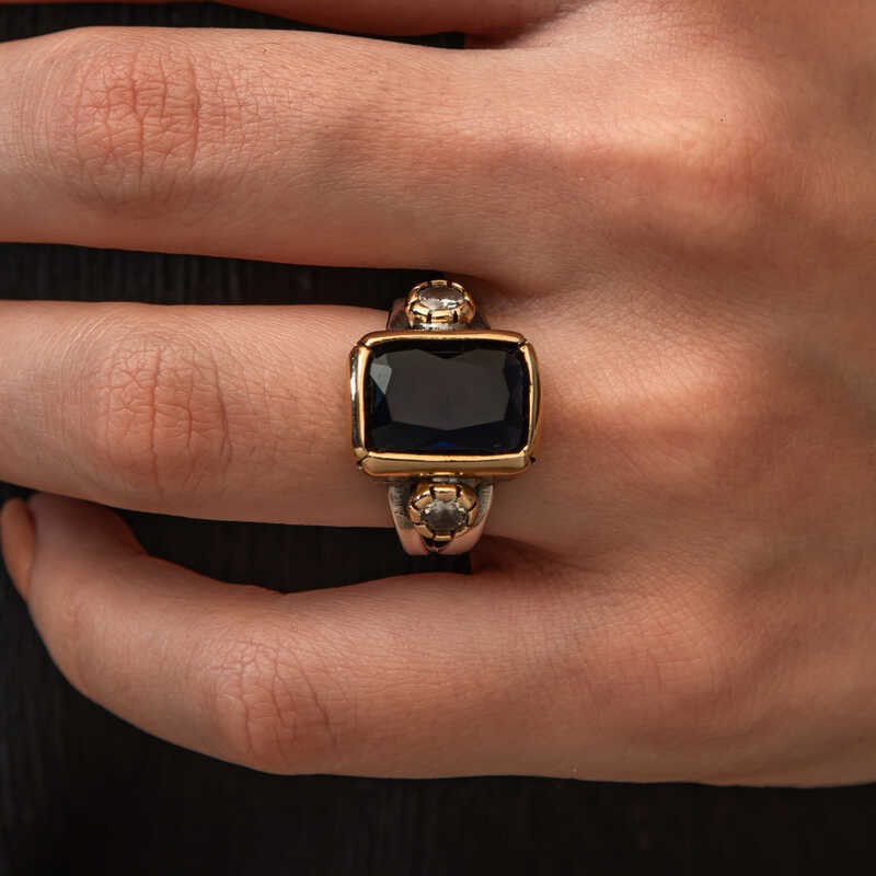 Gümüş Koyu Lacivert Zirkon Taşlı Otantik Kadın Yüzük