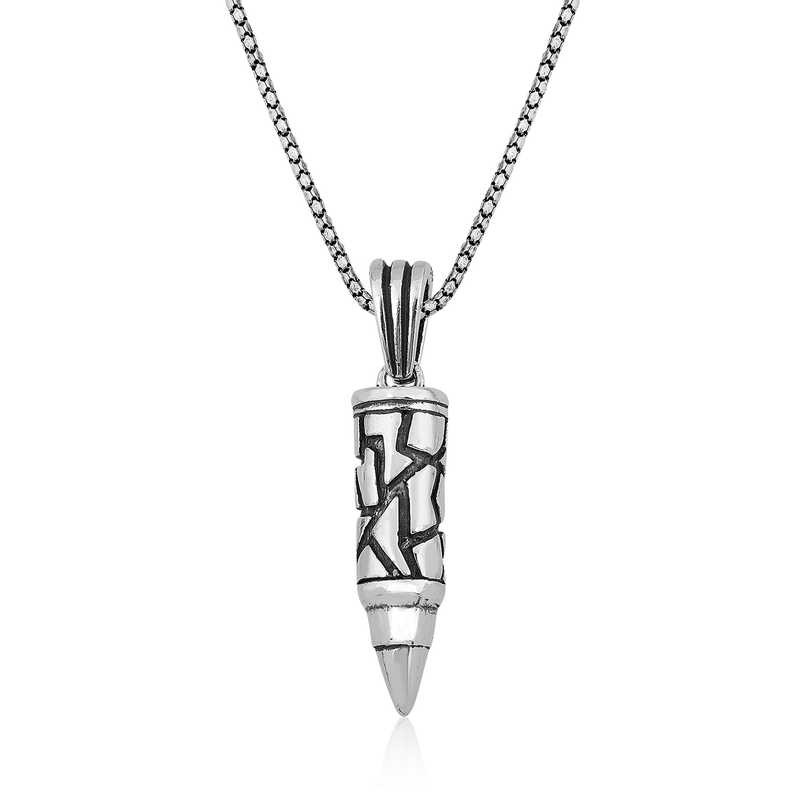 Siz de trendlerin gerisinde kalmaktan hoşlanmıyorsanız Kurşun Kolye sizin için doğru bir seçim olacaktır. Tarihimizden arda kalan en önemli savaş aletlerinden olan kurşun mistik havasıyla sizler için tasarlandı. Bu şık kolye; doğum günü hediyesi, babalar günü veya özel günlerde tercih edilebilecek mükemmel bir seçenektir. Kolye; 925 ayar gümüşten imal edilmiştir. Gümüş eskitme desen ve üzerine oksit kaplama yapılmıştır. Diğer kolyelerde olduğu gibi gümüş kurşun erkek kolye de el emeği ile üretilmiştir. Gümüş ve değerli taşlar nedeniyle belirtilen ortalama ürün ağırlığında ± %10 sapma olabilmektedir.