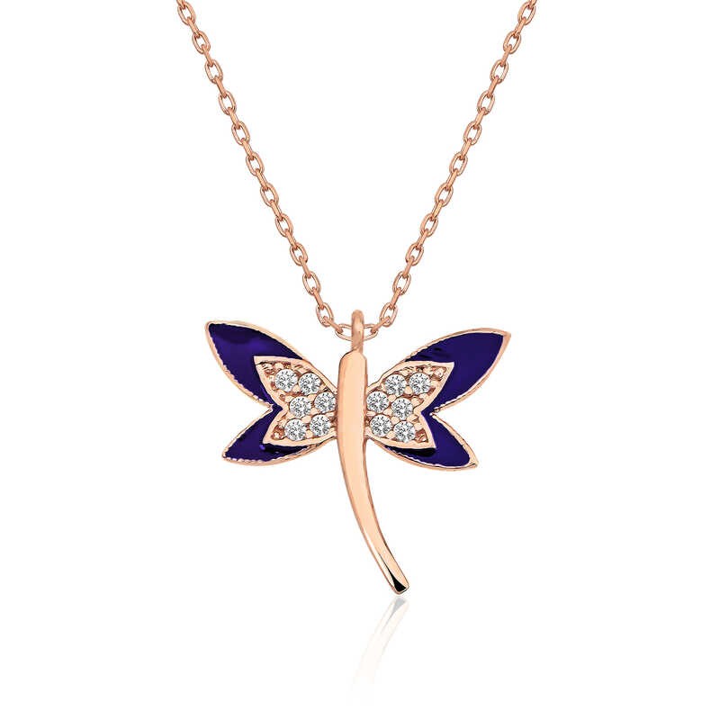 Yusufçuk, bağlılığın, sadakatin, tek eşliliğin sembolüdür... Ölüme rağmen aşkından vazgeçmez yusufçuk... Doğa gereği, erkek yusufçuk ile dişi yusufçuğun çiftleşmesinin ardından erkek yusufçuk ölmektedir. Sonunda ölüm olduğunu bile bile erkek yusufçuk, hayatı boyunca tek bir dişi ile çiftleşiyor ve bundan asla vazgeçmiyor... Kolye, böyle hüzün ve sadakat kokan bu güzellikten ilham alarak tasarlanmıştır... Bu zarif kolye; doğum günü hediyesi, sevgililer günü hediyesi veya özel günlerde tercih edilebilecek müthiş bir kolyedir. Bu şık tasarım 925 ayar gümüşten imal edilmiştir. Gümüş üzerine rose kaplama yapılmıştır. Rose kaplama yapılan kolyeler parlaklığını uzun süre muhafaza eder, gümüş rengini pembe renge dönüştürür ve oksitlenmesini geciktirir. Kolye üzerinde bulunan taşlar zirkondur. Tüm bayan gümüş kolyelerde olduğu gibi gümüş lacivert yusufçuk bayan kolye de el emeği ile üretilmiştir. Gümüş ve değerli taşlar nedeniyle belirtilen ürün ağırlığında ± %10 sapma olabilmektedir.