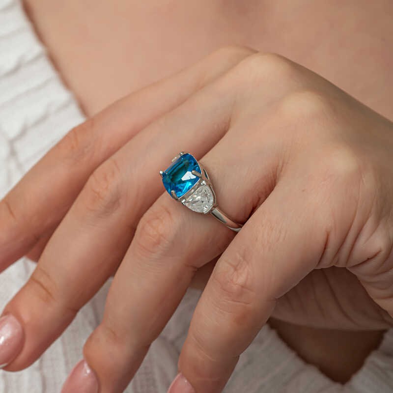 Gümüş Mavi Zirkon Taşlı Kadın Yüzük
