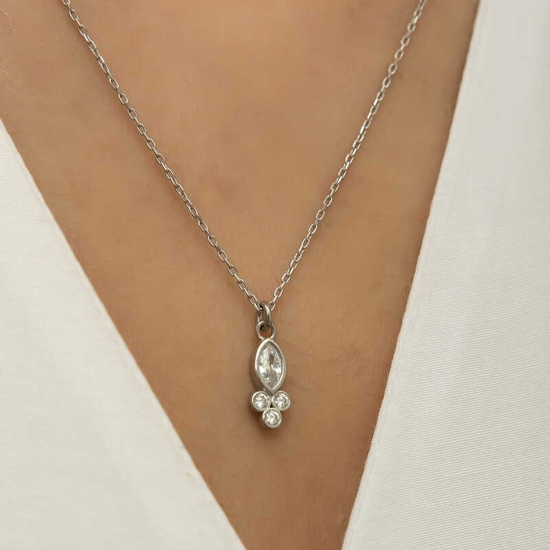 Gümüş Çiğ Damlası Tek Taş Bayan Kolye