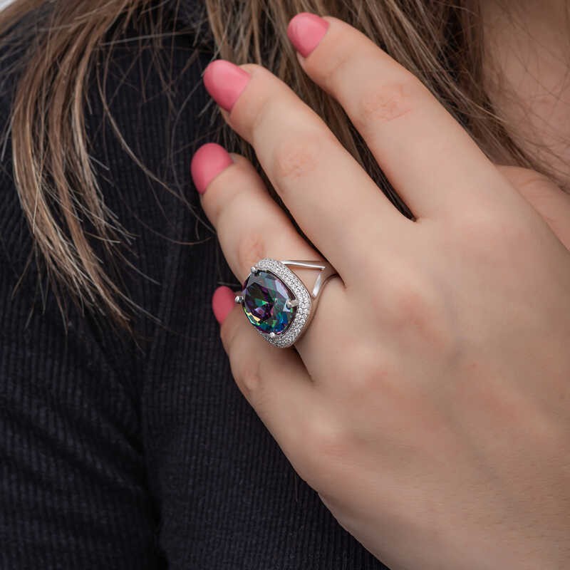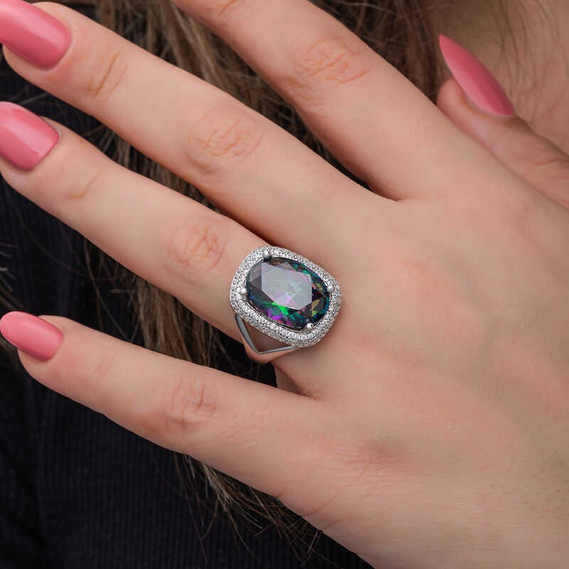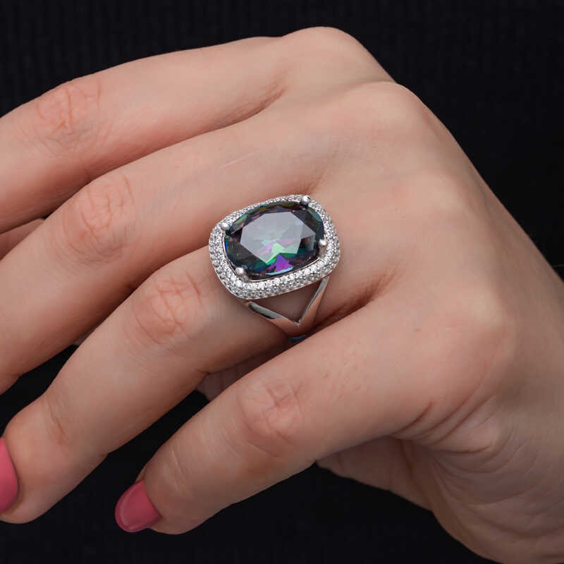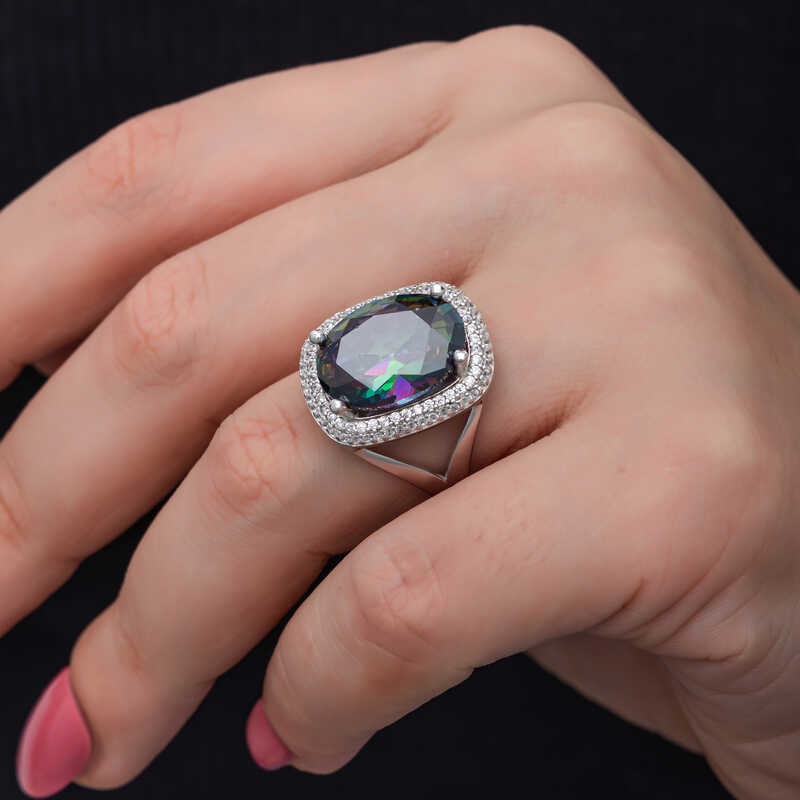 Yüzyıllardır imajınızın simgesi olan takılar, birbirinden özel tasarım koleksiyonlarda sizlerle buluşuyor. Günlük hayatınızdan özel günlerinize kadar her anınızda yanınızda olan gümüş yüzük modelleriyle sizlerde tarzınızı yansıtın. Bu birbirinden farklı dikkat çekici tasarımlar sayesinde ruhunuza hitap eden yaratıcı özgünlüğü ortaya koymaya başlayın. Hayalinizdeki kombinleri gerçeğe dönüştürebileceğiniz gümüş yüzük çeşitleri ile girdiğiniz her ortamda ilgi çekici stiliniz ile ön plana çıkmak artık çok kolay... Mistik taşlı kadın yüzük 925 ayar gümüşten imal edilmiştir, üzerine rodyum kaplama yapılmıştır. Gümüş yüzük modellerimizin tamamı el emeği ile üretilmiştir. Gümüş ve değerli taşlar nedeniyle belirtilen ortalama ürün ağırlığında ± %10 sapma olabilmektedir.