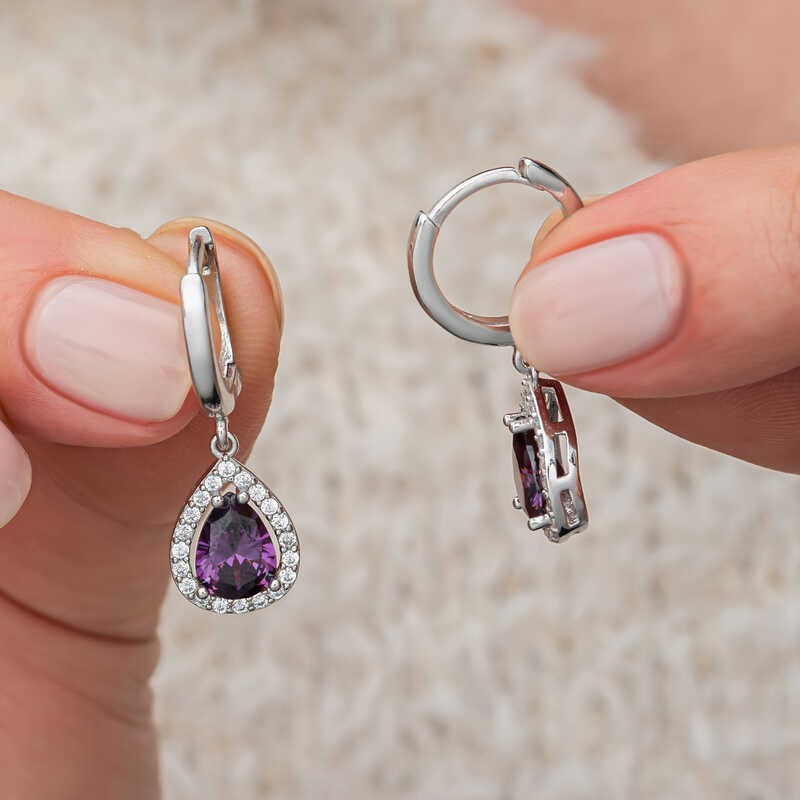 Gümüş Mor Zirkon Taşlı Damla Kadın Küpe
