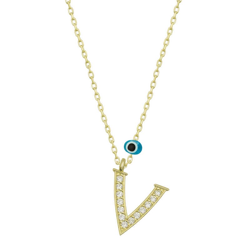 Gümüş Nazar Gold V Harfi Kadın Kolye
