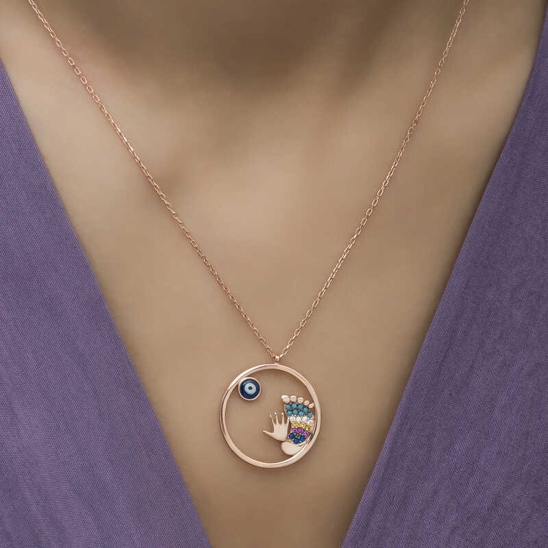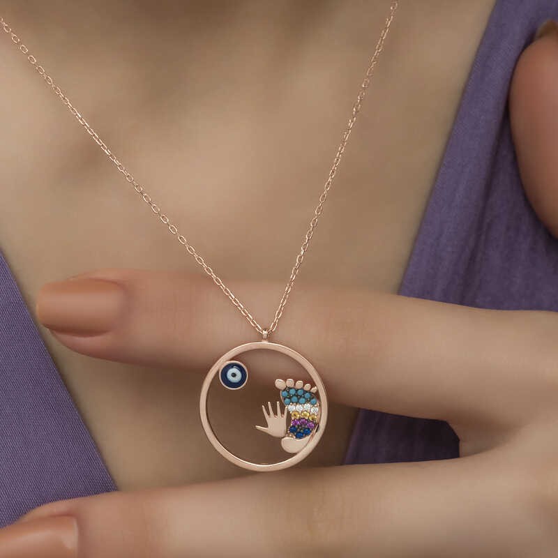 Gümüş Rose Nazarlı El ve Ayak İzi Bayan Kolye