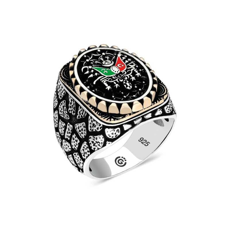 Gümüş Osmanlı Arması Oval Erkek Yüzük