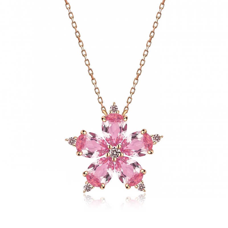 Büyüleyici kamelya çiçeğinden ilham alınarak tasarlanan kolye ışıltısı sizi de sarsın. Işıl ışıl taşlardan oluşan kamelya çiçeği kolye; doğum günü hediyesi, sevgililer günü hediyesi veya özel günlerde tercih edilebilecek mükemmel bir seçenektir. Gümüş pembe kamelya çiçeği bayan kolye 925 ayar gümüşten imal edilmiştir. Bu kolye üzerinde rose kaplama vardır. Rose kaplama yapılan gümüş bayan kolye modelleri parlaklığını uzun süre muhafaza eder. Tüm gümüş bayan kolye modellerimizde olduğu gibi gümüş pembe kamelya çiçeği bayan kolye modeli de el emeği ile üretilmiştir. Gümüş ve değerli taşlar nedeniyle belirtilen ortalama ürün ağırlığında ± %10 sapma olabilmektedir.
