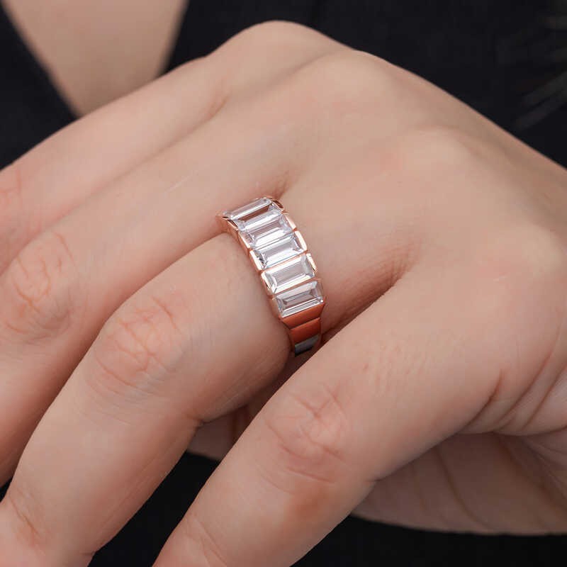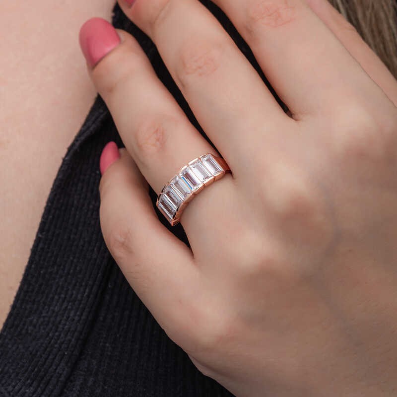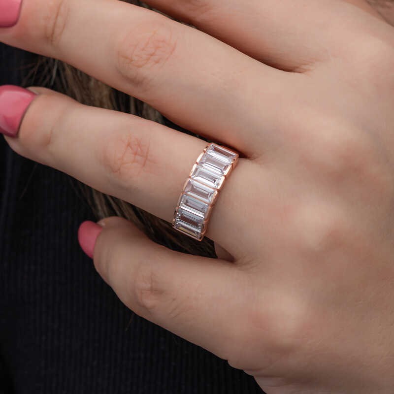 Gümüş Rose Baget Beyaz Taşlı Kadın Yüzük