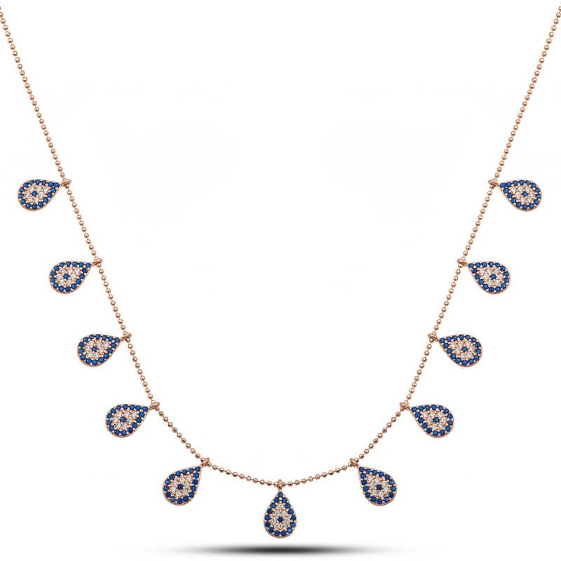 Gümüş Rose Damla Nazarlı Şans Kadın Kolye