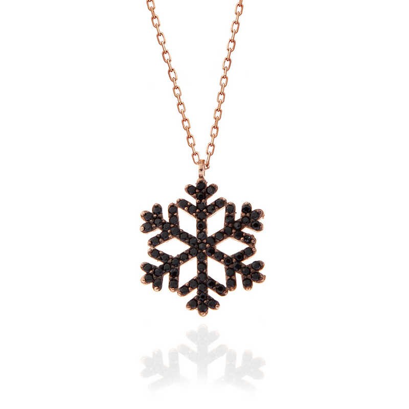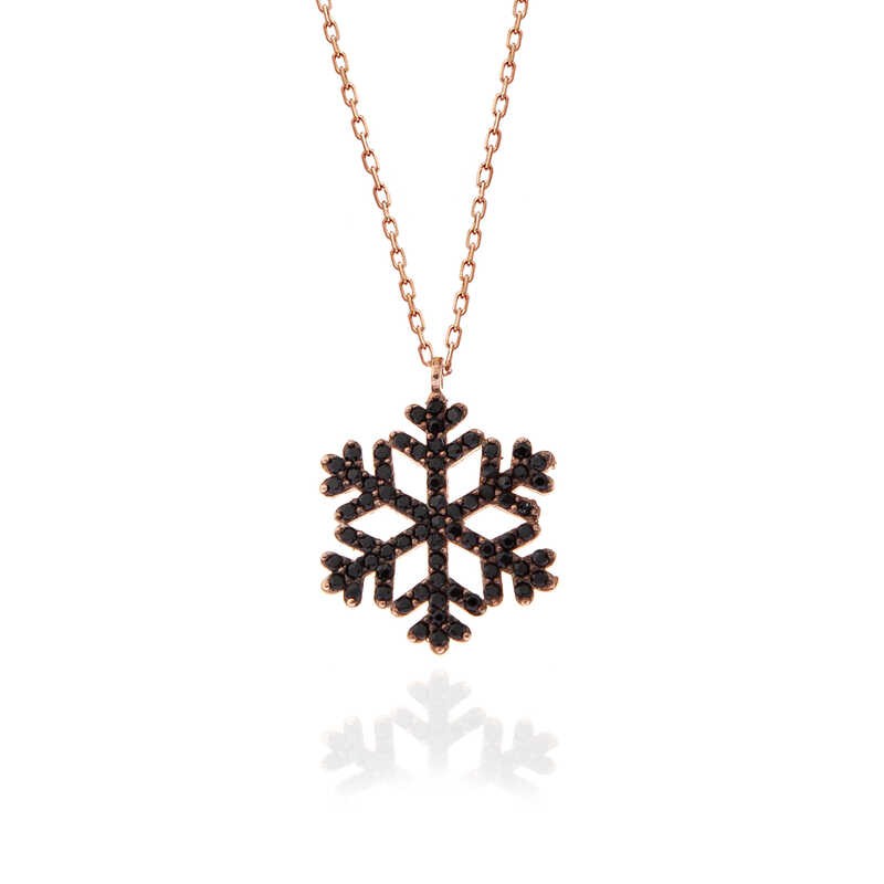 Her kar tanesinden aslında sadece bir tane var. Sevdiğiniz kişiye hediye ettiğiniz kar tanesi kolye ile onun sizin için eşsiz ve biricik olduğunu sessizce dillendirmiş oluyorsunuz. Sizlerde her zevke uygun gümüş kar tanesi kadın kolye modeli ile şıklığınıza ışıltı katın. Kar tanesi kadın kolye 925 ayar gümüşten imal edilmiştir. Gümüş üzerine rose kaplama yapılmıştır. Rose kaplama yapılan gümüş kadın kolye modelleri parlaklığını uzun süre muhafaza eder ve oksitlenmesi gecikir. Kolye üzerinde bulunan siyah taşlar zirkondur. Gümüş olan zincir boyu ortalama 45 cm'dir. Gümüş siyah taşlı kar tanesi kadın kolye modeli diğer kar tanesi kadın kolye modelleri gibi el emeği ile üretilmiştir. Gümüş ve değerli taşlar belirtilen nedeniyle ürün ağırlığında ± %10 sapma olabilmektedir.