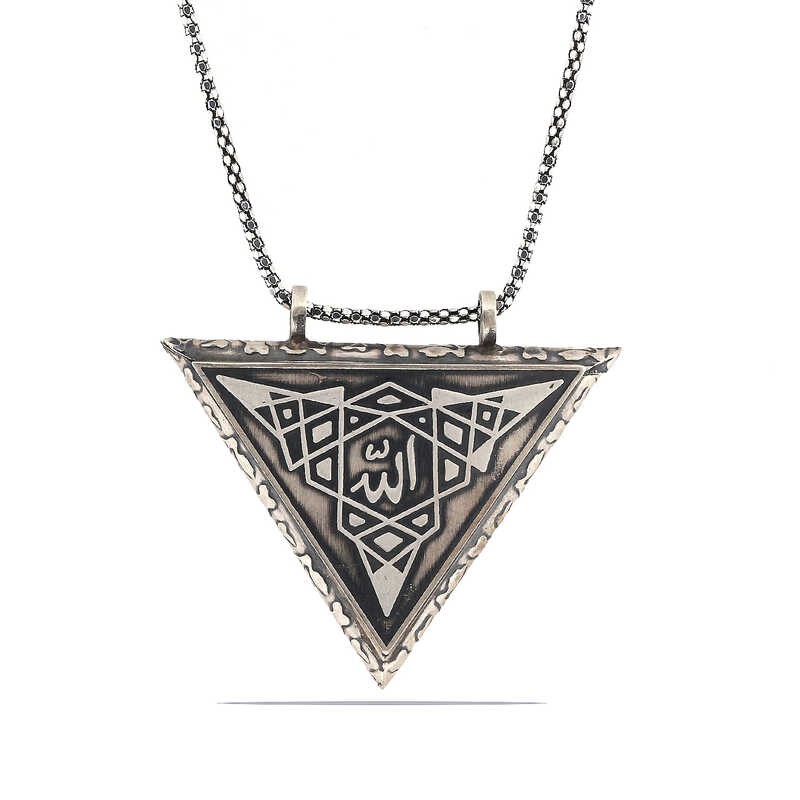 Gümüş Üçgen İçi Açılabilen Allah Muskalık Kolye