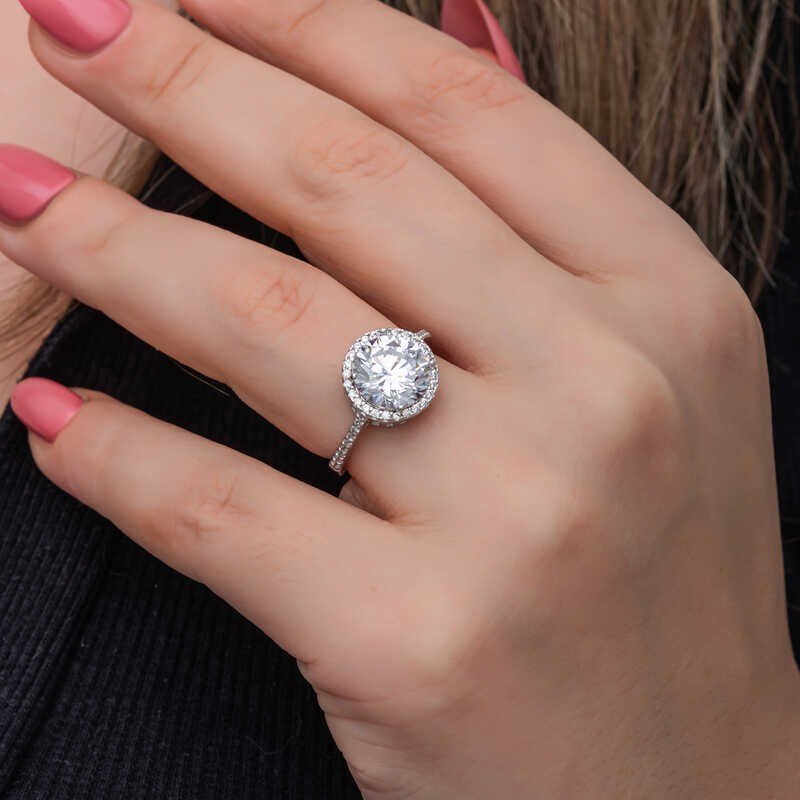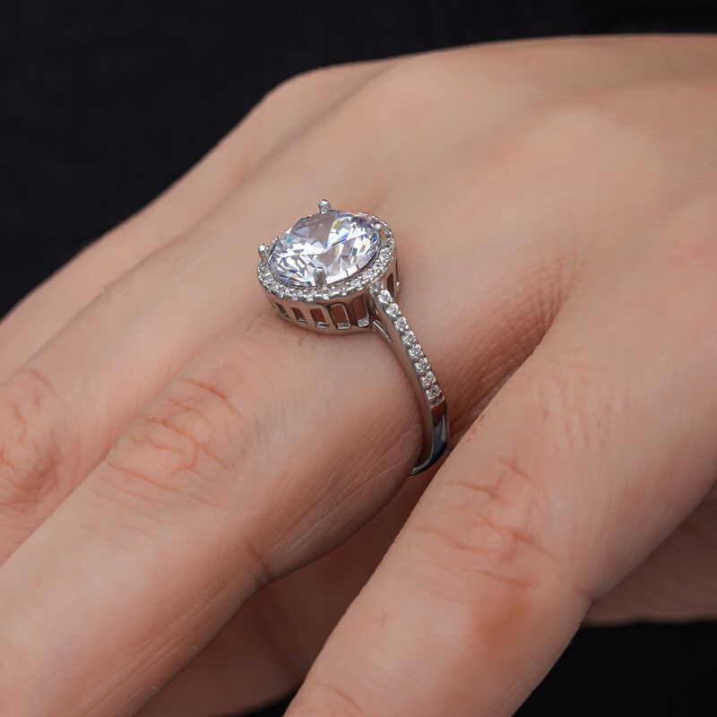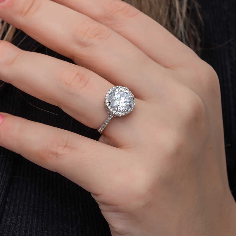 Gümüş Yuvarlak Montür Tek Taş Kadın Yüzük