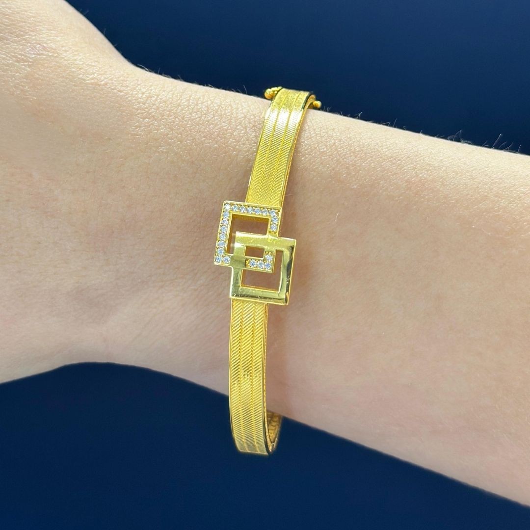 Yeni nesil hasır 14 ayar altın kelepçe, geleneksel hasır örgü tekniğinin modern bir yorumuyla ortaya çıkan, şık ve özgün bir tasarımdır. Klasik hasır bileziklerin zarif görünümünü korurken, günümüzün trendlerine uygun detaylarla zenginleştirilen bu modeller, hem geleneksel hem de modern tarzı benimseyenler için mükemmel bir seçenektir.