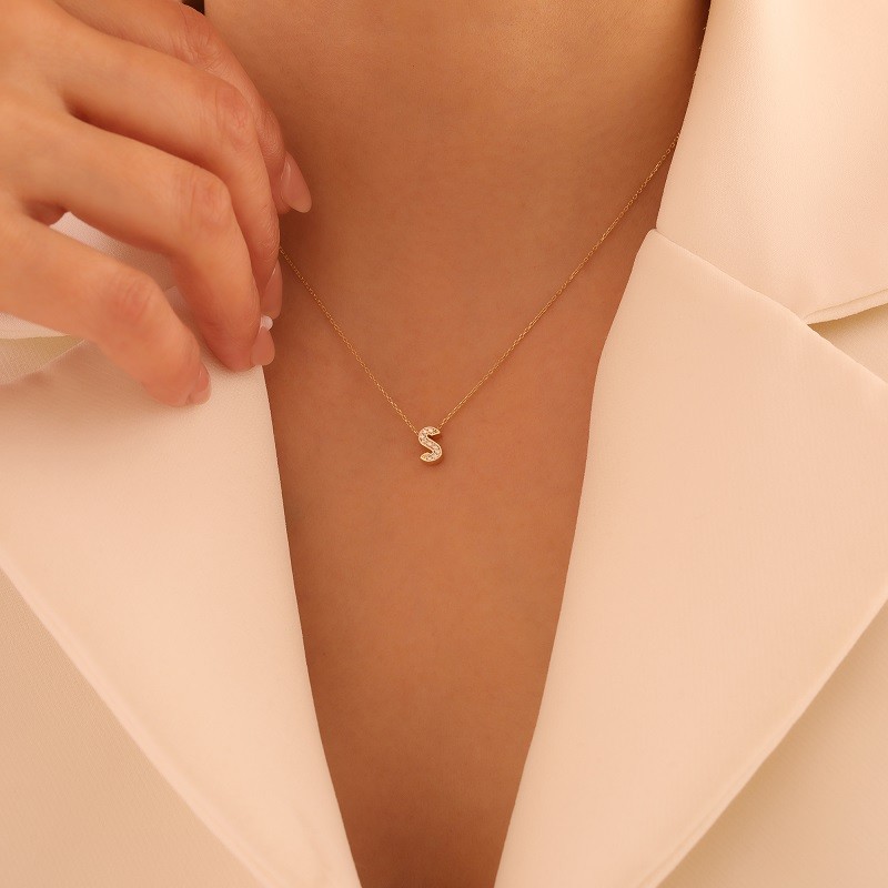 S harf 14 ayar altın kolye, kişisel zarafeti ve anlamı bir araya getiren, hem günlük hayatta hem de özel anlarda kullanabileceğiniz, şık ve anlamlı bir mücevherdir. "S" harfinin zarif tasarımı ve 14 ayar altının ışıltısı, bu kolyeyi her tarza uyum sağlayan, özel bir aksesuar haline getirir.