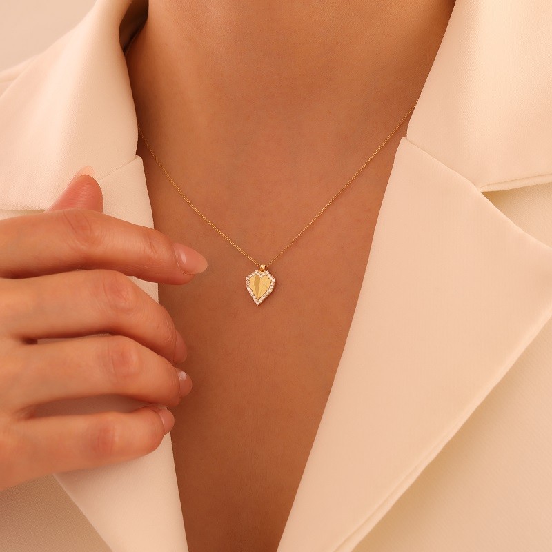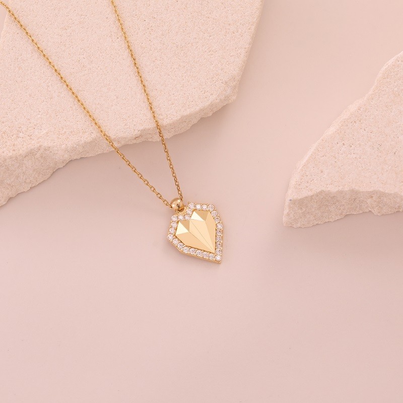 Taşlı kalp 14 ayar altın kolye, aşkın ve sevginin en romantik sembollerinden biri olan kalbi, ışıltılı taşlarla süsleyerek zarafeti ve anlamı bir araya getiren, özel ve anlamlı bir mücevherdir. 14 ayar altının ışıltısı ve taşların göz kamaştırıcı parıltısı, bu kolyeyi her tarza uyum sağlayan, fark yaratan bir aksesuar haline getirir.