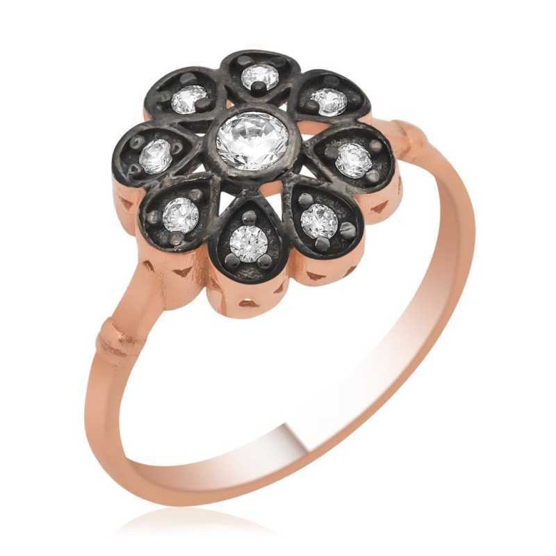 Gümüş Rose Elmas Montür Çiçek Bayan Yüzük