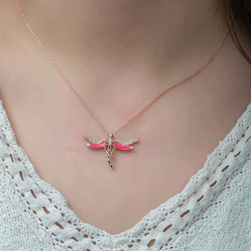 Yusufçuk, bağlılığın, sadakatin, tek eşliliğin sembolüdür... Ölüme rağmen aşkından vazgeçmez yusufçuk... Doğa gereği, erkek yusufçuk ile dişi yusufçuğun çiftleşmesinin ardından erkek yusufçuk ölmektedir. Sonunda ölüm olduğunu bile bile erkek yusufçuk, hayatı boyunca tek bir dişi ile çiftleşiyor ve bundan asla vazgeçmiyor... Kolye, böyle hüzün ve sadakat kokan bu güzellikten ilham alarak tasarlanmıştır... Bu zarif kolye; doğum günü hediyesi, sevgililer günü hediyesi veya özel günlerde tercih edilebilecek müthiş bir kolyedir. Bu şık tasarım 925 ayar gümüşten imal edilmiştir. Gümüş üzerine rose kaplama yapılmıştır.Rose kaplama yapılan kolyeler parlaklığını uzun süre muhafaza eder, gümüş rengini pembe renge dönüştürür. Kolye üzerinde bulunan taşlar zirkondur. Tüm bayan gümüş kolyelerde olduğu gibi gümüş yusufçuk bayan kolye de el emeği ile üretilmiştir. Gümüş ve değerli taşlar nedeniyle belirtilen ürün ağırlığında ± %10 sapma olabilmektedir.