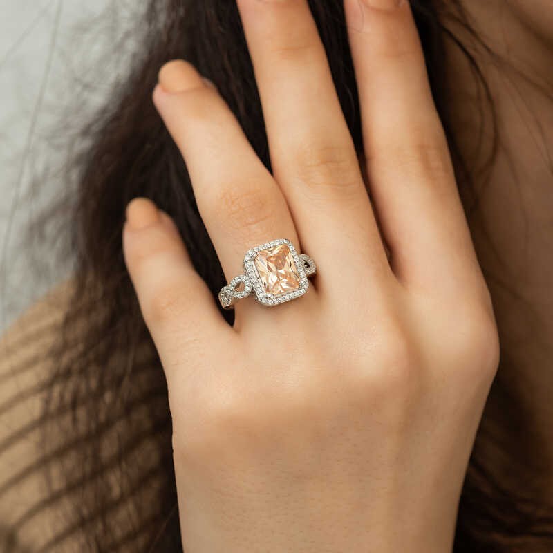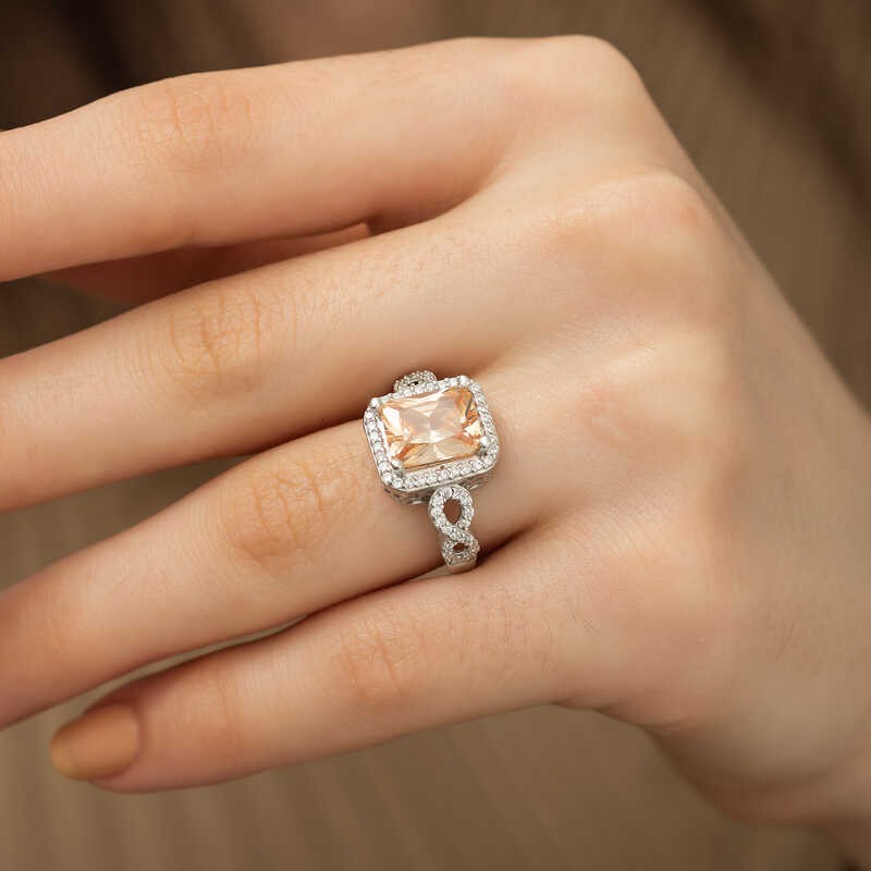 Gümüş Baget Kare Bayan Yüzük