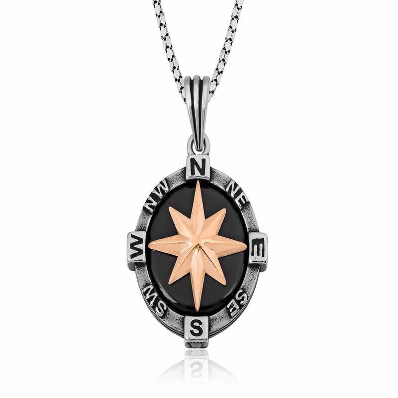 "Benim yönümde, yolumda sensin" diyenlerin tercihi pusula kolye sizleri bekliyor. Bu şık pusula kolye modeli 925 ayar gümüşten imal edilmiştir. Gümüş üzerine oksit kaplama yapılmıştır. Gümüş oksit, kaplanan ürünler hafif siyah renklendirmeye ve antik bir görünüm elde etmeye yarayan prosestir. Çift taraflı pusula kolye 925 ayar gümüşten imal edilmiştir. Gümüş ve değerli taşlar nedeniyle belirtilen ortalama ürün ağırlığında ± %10 sapma olabilmektedir.