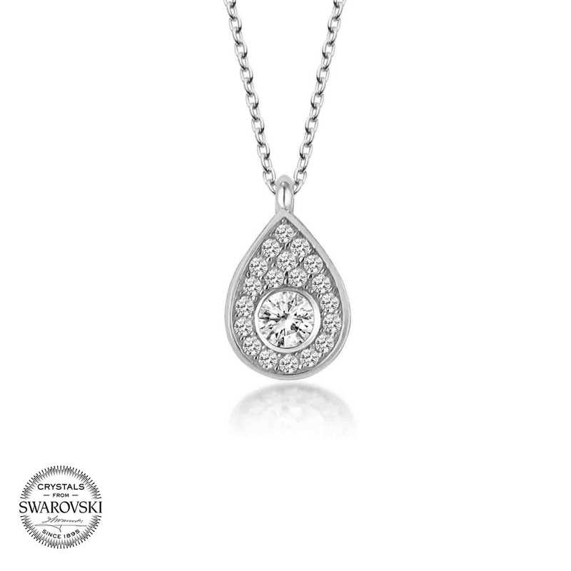 Swarovski Taşlı Gümüş Damla Tektaş Bayan Kolye