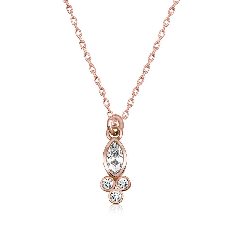 Gümüş Rose Çiğ Damlası Mekik Tek Taş Bayan Kolye