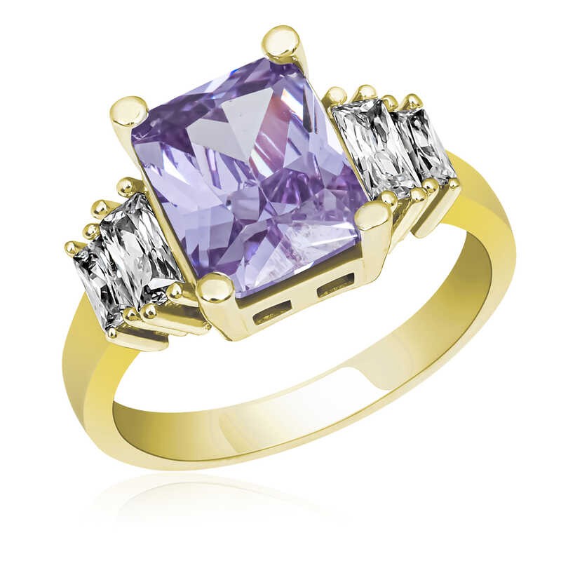 Gümüş Lila Baget Taşlı Gold Bayan Yüzük