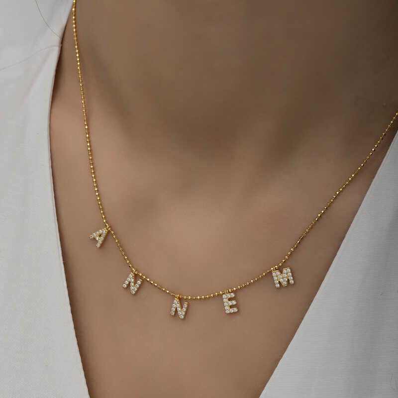 Gümüş Gold Annem Yazılı Bayan Kolye