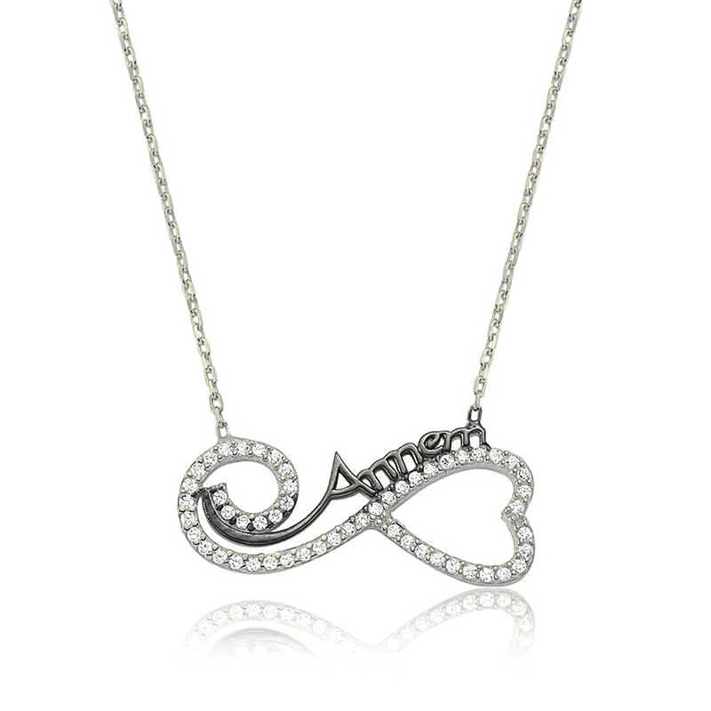 Gümüş Kalpli Sonsuzluk Annem Kolye