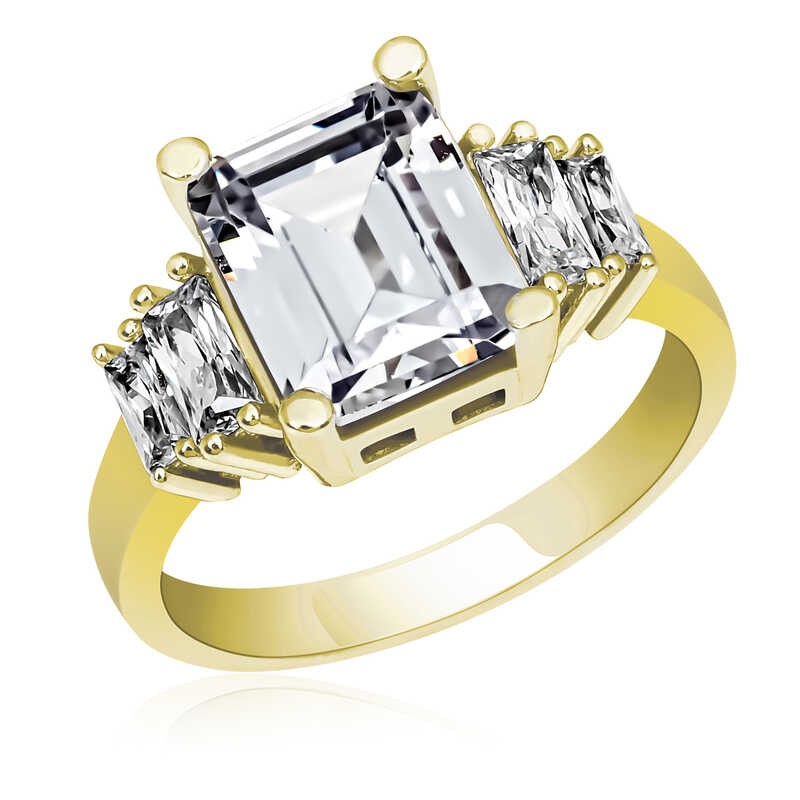 Gümüş Beyaz Baget Taşlı Gold Bayan Yüzük