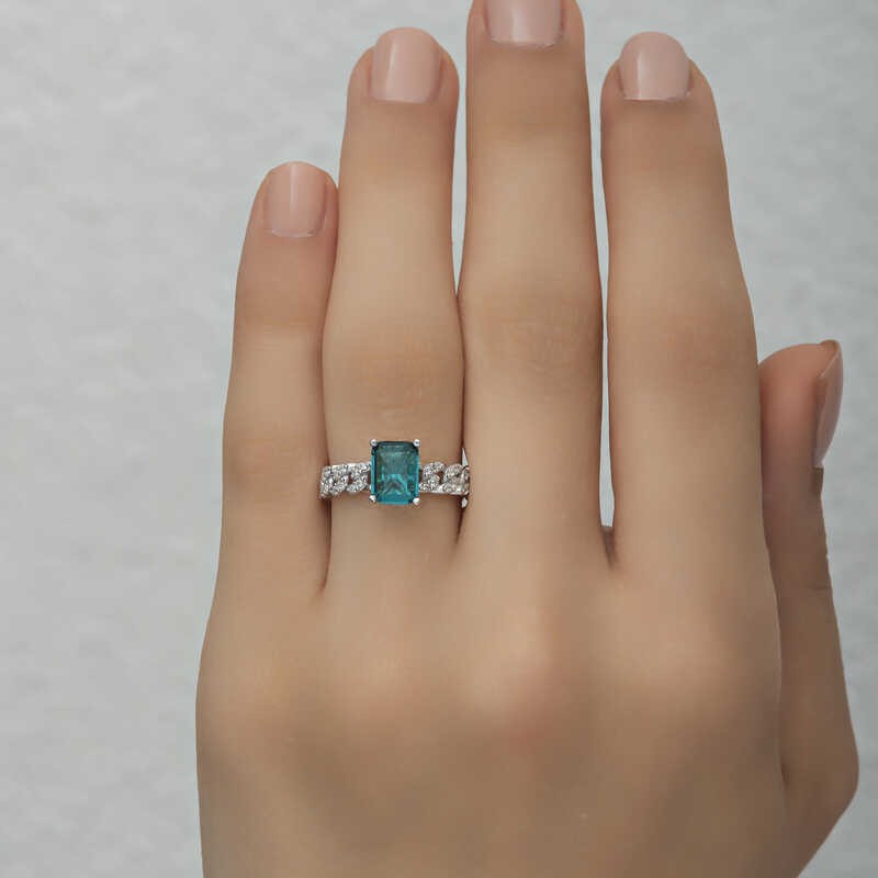 Gümüş Koyu Yeşil Baget Taşlı Kadın Yüzük