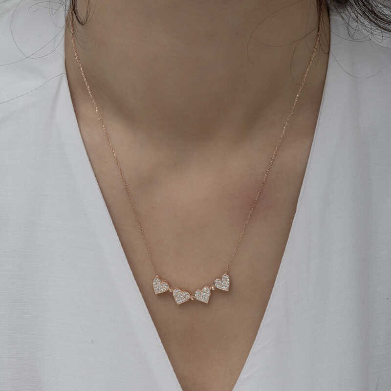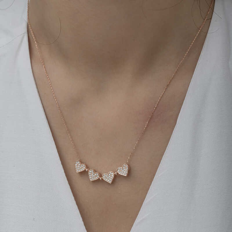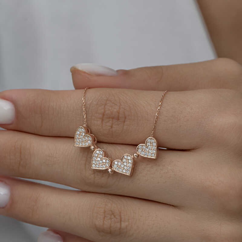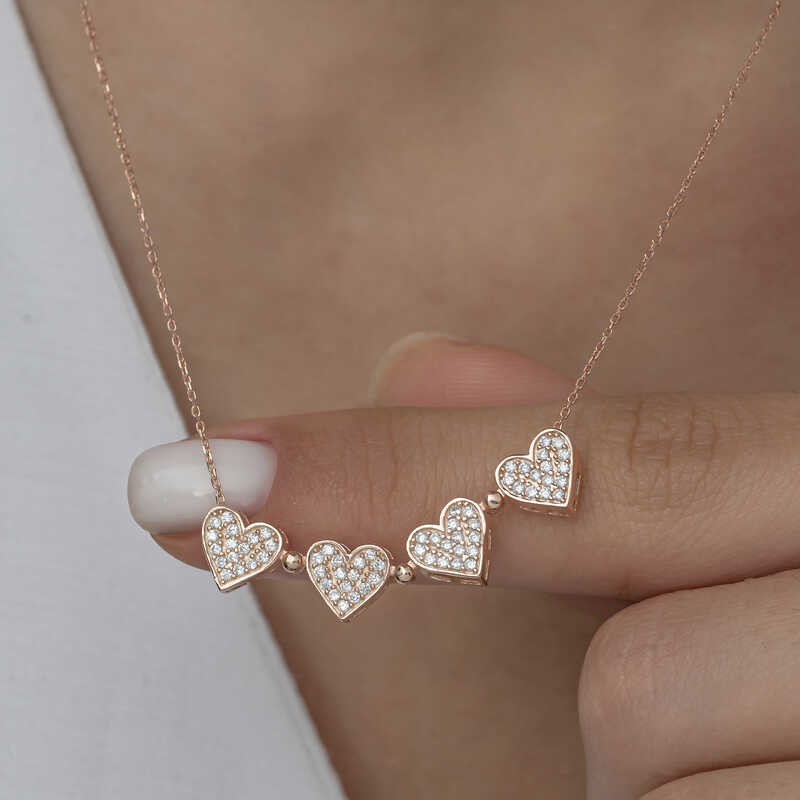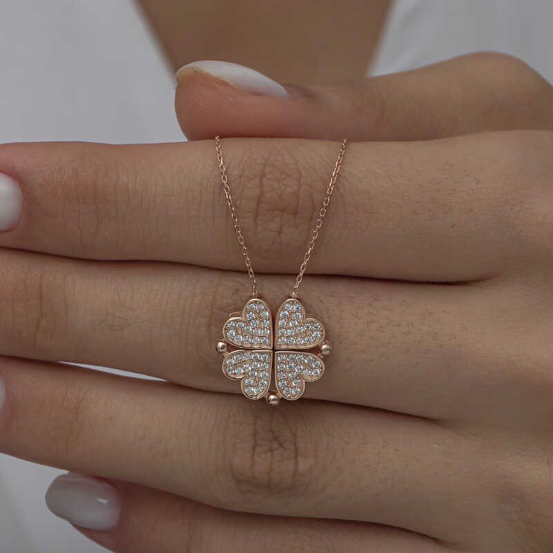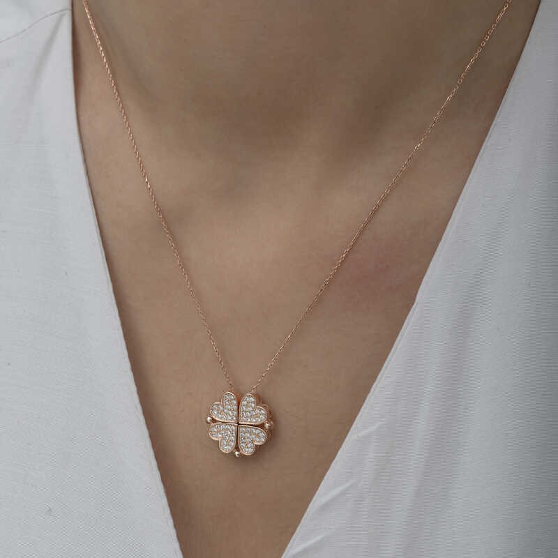 Gümüş Rose Kalpli Açılabilen Yonca Kadın Kolye