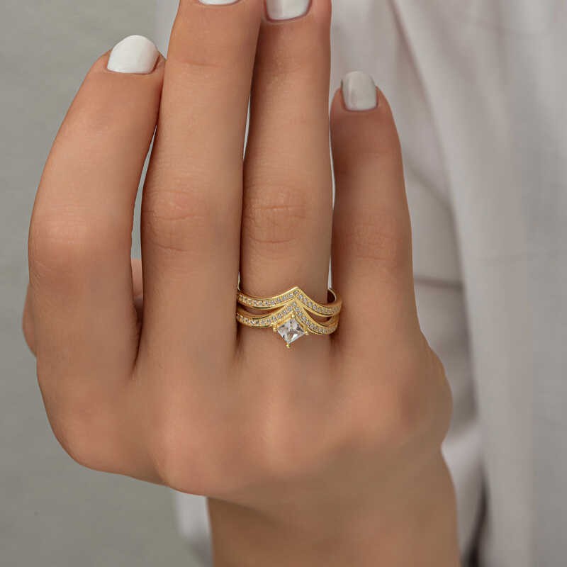 Bu özel tasarım tek taş yüzük 925 ayar gümüşten imal edilmiştir. Gümüş üzerine gold kaplama yapılmıştır. Gold kaplama yapılan kadın gümüş yüzük modelleri parlaklığını uzun süre muhafaza eder, oksitlenmesi gecikir. Yüzük üzerinde bulunan taşlar zirkondur. Sevdiğinize doğum günü, sevgililer günü ve özel günlerde verebileceğiniz mükemmel bir hediye seçeneğidir. Gümüş kadın yüzük modellerimizin tamamında olduğu gibi bu tek taş kadın yüzük de tamamen el emeği ile üretilmiştir. Gümüş ve değerli taşlar nedeniyle belirtilen ortalama ürün ağırlığında ± %10 sapma olabilmektedir.