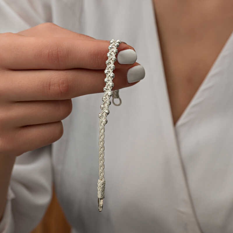 Kazaziye, kazazlık veya kazaz; saf gümüş tellerden, örgü teknikleri kullanılarak yapılan bir el sanatıdır. Tespihlerde kullanımı olduğu gibi bileklik, kolye olarak da yapılmaktadır. Örgü kazaziye bileklik tamamen el emeği göz nurudur. Şık bir görünüm yakalamak isteyenlere hitap eden, modası geçmeyecek olan kazaziye örgü bileklik sizleri bekliyor. Gümüş örgü kazaziye bileklik; doğum günü hediyesi, sevgililer günü hediyesi veya özel günlerde tercih edilebilecek mükemmel bir seçenektir. Gümüş bileklik 1000 ayar saf gümüşten yüzde yüz el işçiliği yapılmıştır. Gümüş üzerine oksit kaplama yapılmıştır. Gümüş ve değerli taşlar nedeniyle belirtilen ortalama ürün ağırlığında ± %10 sapma olabilmektedir.