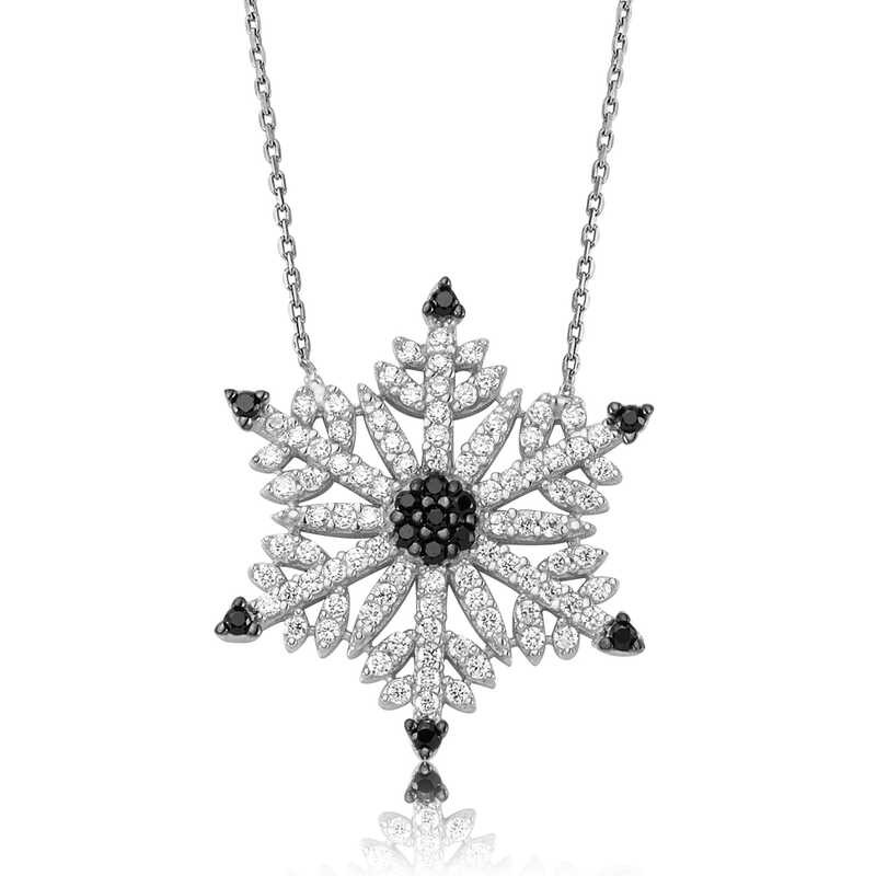 Kadınların ışıltısı, berraklığı kar tanesine benzetilip özel olarak tasarlanmıştır. Kar tanelerinin her birinin kadınlar gibi eşsiz ve ayrı kıymette olması onları özel kılan bir diğer özelliktir. Asilliği her dönemde dikkat çekmeyi başarmıştır. Bunun yanında insanların tıpkı kar taneleri gibi birbirlerine zarar vermeden de mutlu bir şekilde yaşayabileceklerini sembolize etmektedir. Bu şık kolye; doğum günü hediyesi, sevgililer günü hediyesi veya annelere hediye olarak özel günlerde tercih edilebilecek mükemmel bir seçenektir. Kolye, 925 ayar gümüşten imal edilmiştir. Gümüş üzerine rodyum kaplama yapılmıştır. Rodyum kaplama yapılan gümüş kadın kolye modelleri parlaklığını uzun süre muhafaza eder, oksitlenmesi gecikir. Zincir boyu ortalama 45 cm'dir. Tüm gümüş kadın kolye modellerinde olduğu gibi bu gümüş kar tanesi kadın kolye de tamamı el emeği ile üretilmiştir. Gümüş ve değerli taşlar nedeniyle belirtilen ortalama ürün ağırlığında ± %10 sapma olabilmektedir.