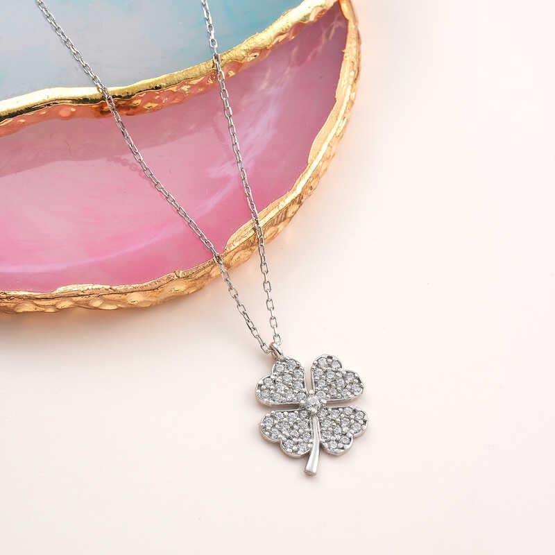 Gümüş Dört Yapraklı Yonca Kadın Kolye